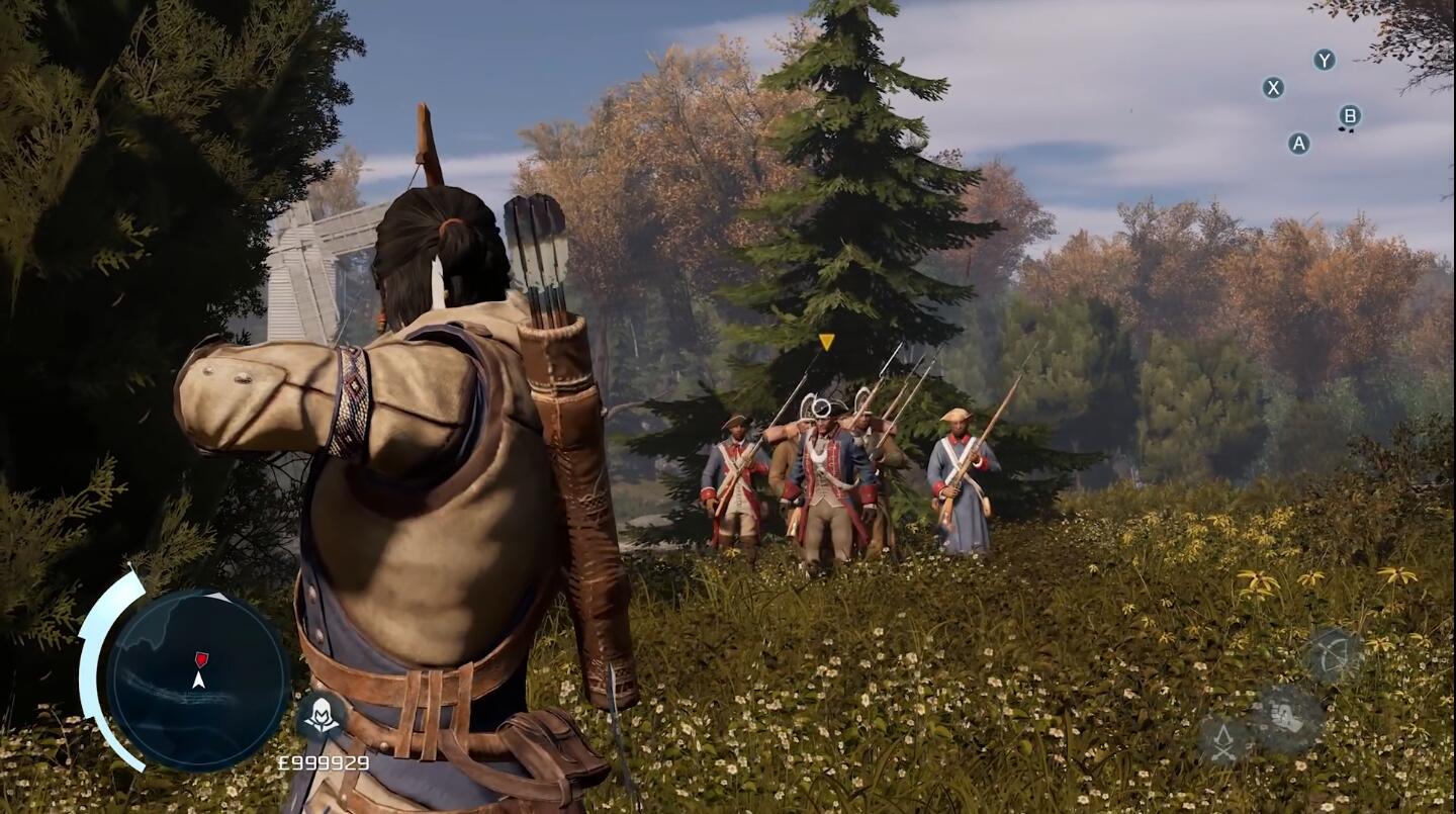 光阴如箭,九年后的康纳已是精健的小伙子。这天和伙伴嘎纳多贡到树林里小试身手。本作和前作的差别,在于除了房屋可以攀援,还增加了树木的攀爬跳跃,利用它们可以实现更多的清行和空中暗杀手段。