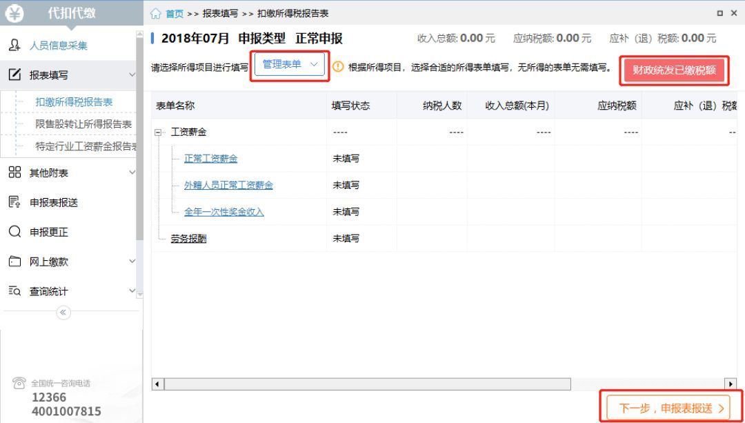 报表填写功能,是扣缴客户端的核心功能模块,是四大主体流程之一。人员信息采集完成之后,就需要为纳税人填写申报数据了。