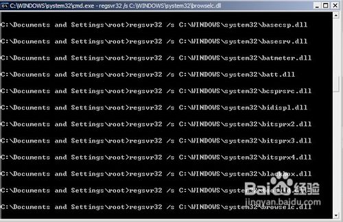 在命令行中输入: for %1 in (%windir%system32*.dll) do regsvr32.exe /s %1 ,在这里我们可以先将此命令复制,然后利用cmd命令编辑的粘贴到命令行中,然后点击回车,这时候需要等一段时间。如下图所示: