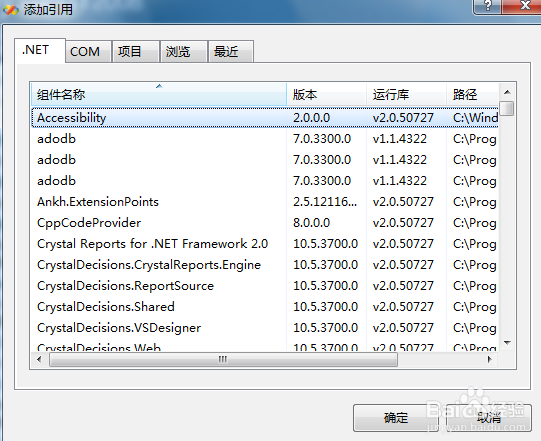 第一个选项“.NET”是列出可供引用的所有 .NET Framework 组件。