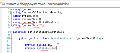 按照以上的说明,我们就可以根据自己的需要添加相应的引用。现在我将用实际的例子来说明具体的操作步骤。比如你在代码中要用到DataTable,在用之前你必须先添加using System.Data;如果没有增加引用,这个语句就会报错。编译无法正常通过。