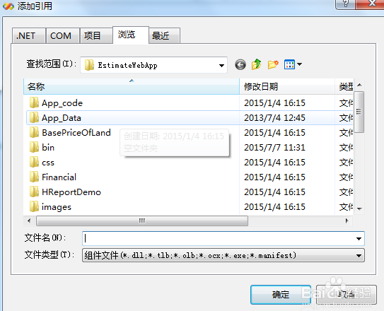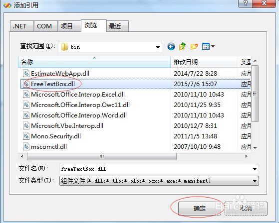 在解决方案那边右键点击“引用”,弹出引用对话框,点击“浏览”切换到如下图1,默认就是定位到该项目所在的文件夹,点击"bin",找到FreeTextBox.dll点击确定,就完成了该引用的添加了,后续代码中你就可以正常使用该dll了。