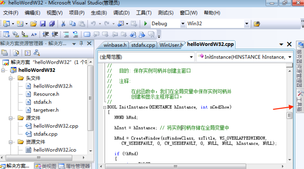 打开Visual Studio的工程,如果工程右侧有工具箱的按钮,那么直接点击