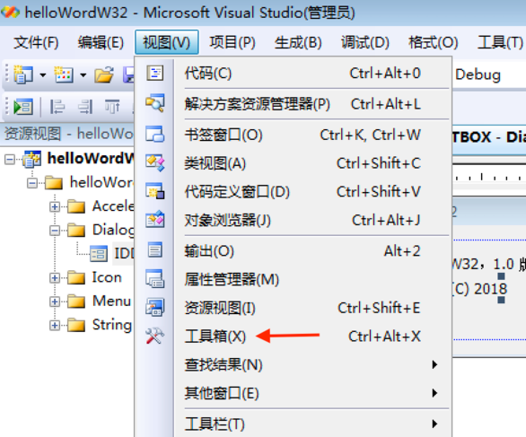 如果工程右侧没有显示“工具箱”,那么可以通过菜单“视图”-》工具箱来打开“工具箱”