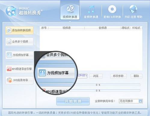 1、首先我们打开超级转换秀,然后点击“添加待转换”的视频并把我们想要添加字幕的视频添加进来;
