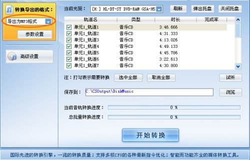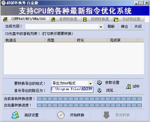 1.支持将CD音乐直接转换为WAV、MP3、WMA、OGG等数字音乐2.支持多光驱