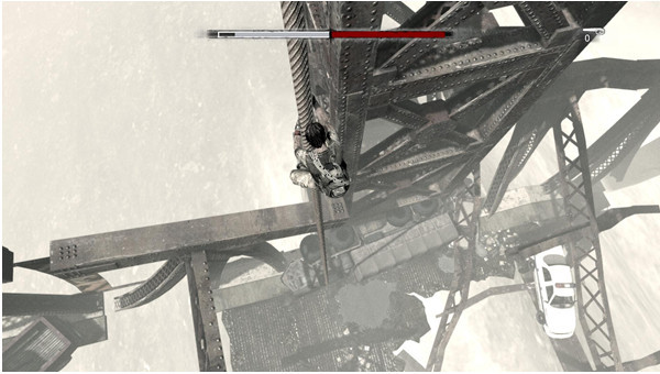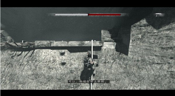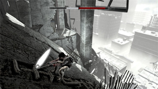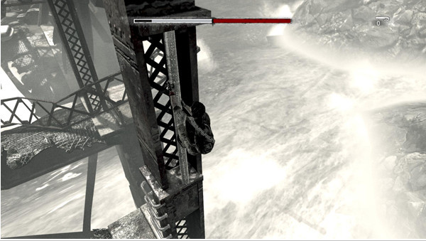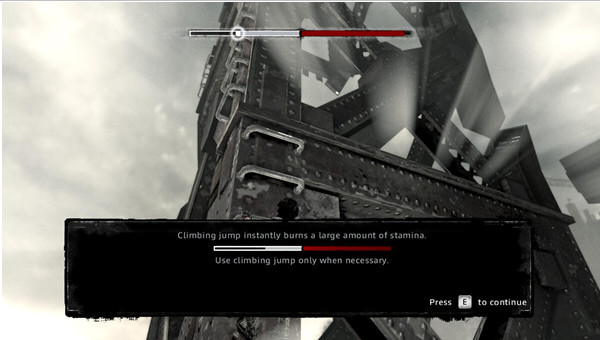 游戏中的最大亮点也是最大的难点,玩家能获得的补给资源是非常稀少的,在不断的攀爬中,不仅动作笨拙而且还要耗费体力值,当体力耗尽,我们就要拼命的狂按RT键来叫主角休息,代价是体力上限的一点点减少,不得不说这是个不错的创意,合理分配物资就显得非常重要了。