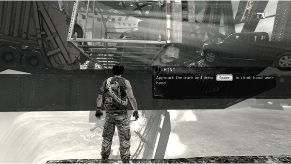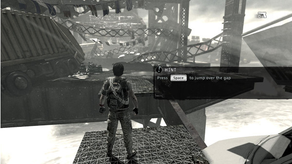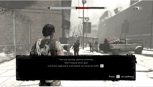 很有意味的开场,不过笔者对画面的质量和特意设定的灰暗色彩感到十分不适应。操作方面,可以再玩之前重新自定义一下,会更舒服。本次故事的主角,为了爱和生存奋战的英雄。第一个任务:回家,穿越被毁的老家城区,干掉可恶的恶人们,再翻越无数无聊的障碍……基本就到家了。