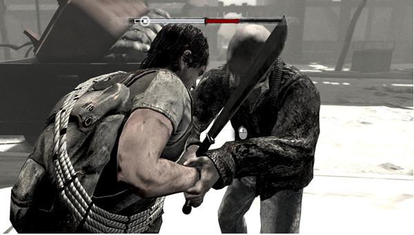 刀和枪,游戏的物理引擎还是相当的不错,打击感也是比较的出色,而且动作丝毫的不张扬,很符合普通的人的思路,一招一式,不管是玩家的打斗还是游戏中NPC的动作都还是很真实的,不过和敌人刀战相持是的画面只有一个很单调。手枪是自动瞄准,子弹少的可怜。