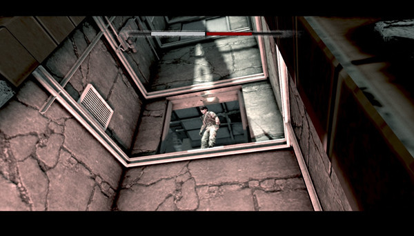 这里向左找到消防梯。环境并不是唯一的威胁,人才是真正可怕的存在。根据观察,对不同的人用不同的对策。