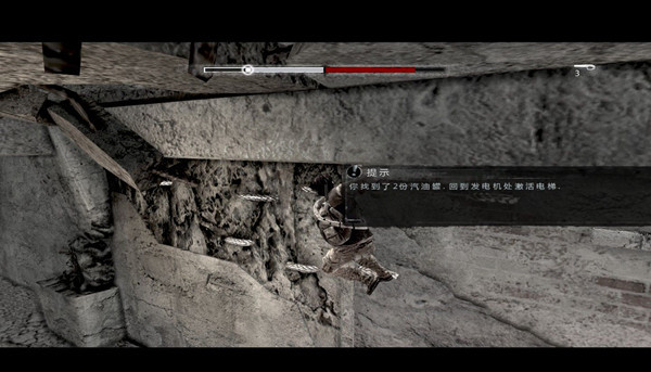 到尽头会看见建筑物,(白色亮光目标点)沿着水管下去,跑到对面爬水管上去,进入建筑物!(进入建筑物后主角就开始了波斯猴子之旅!)在冲坡的时,一直按 右键 放慢速度还可以抓水管,按左键加移动键可翻身!遇到几波敌人杀死后拉开拉闸门,继续往上走。来到发电机处。需要两桶汽油激活!往前走,沿着旁边的水管,爬上去,找到汽油罐再返回启动!启动后,在左边的出口沿着水管往上爬。