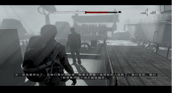 下桥后,跑到对面水管处爬上去,目标完成。刚上船就遇敌人灭了他们后往右边第一次遇到了穿防弹衣的敌人瞄准头部一枪死(建议用弓子弹很少)获得防弹衣!然后下楼梯走进船舱,在船舱解决敌人后爬上楼梯来到船的另一边。往右走又遇敌人干掉他们沿着右边走到船头,进去控制室拿起发射器。在返回房间的会遇到几波敌人杀死后,沿路回到房间,跳到对面的水管上爬上去到对面的楼顶后,往右边走会看见一对落难人,沿着红色梯子爬上去后,冲下大坡,回到电梯目标完成!