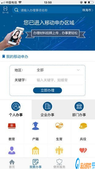 “珠海办事”是由珠海市人民政府倾力打造的移动便民服务应用。为市民及企业提供在线申办、预约、办事指南、进度查询、服务评议、咨询投诉等服务,并以方便企业和办事人的需求提供事项分类导航功能的智能服务窗口。用户可通过客户端进行政务信息的获取、便民服务和互动交流。