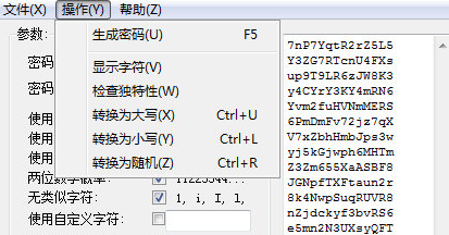 设置密码长度、生成密码的组数、是否使用小写字母、是否使用大写字母、是否使用、是否使用箱子字谜,另外还能自定义一些规则,最后点击“生成”就能生成一组随机密码了。