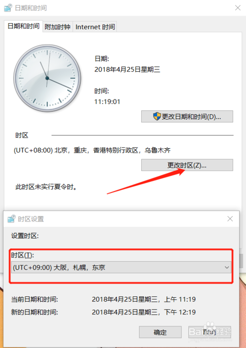这里也有另一种修改系统时区的方法,打开控制面板,找到日期与时间设置,点击更改时区,就可以直接选择东九区,点击确定即可。