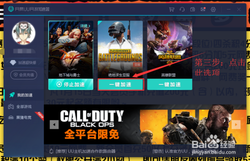 加速器吃鸡路径设置步骤三:完成游戏的添加以后,返回程序首界面,点击首界面游戏下方的“一键加速”。