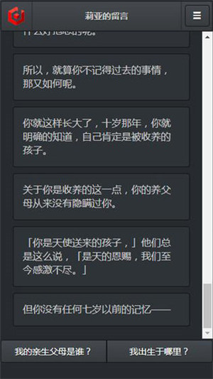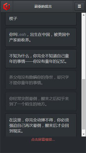 莉亚的留言手游是一款文字解谜的剧情向游戏,故事发生在一个生活在美国的中国小女孩身上,她不但经常性的晕倒并且醒来后出现在一个完全陌生的地方,你需要拯救这个小女孩,帮助她解开这些谜题。