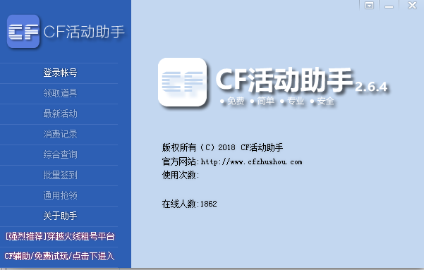 CF活动助手永久免费使用,绝不向用户收取一分钱,您的使用就是我们的动力!