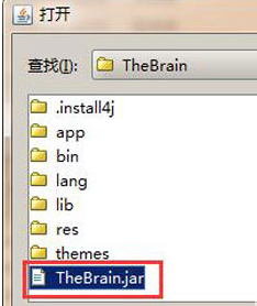 4、找到安装目录下的的TheBrain.jar,并点击打开。(默认目录:"C:\Program Files (x86)\TheBrain")