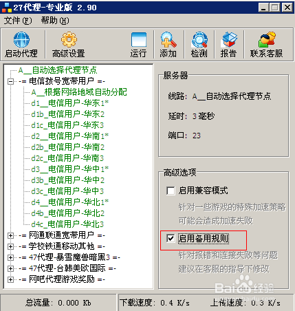 然后:不行的话,勾选代理软件高级设置里面的备用规则,重新启动代理软件