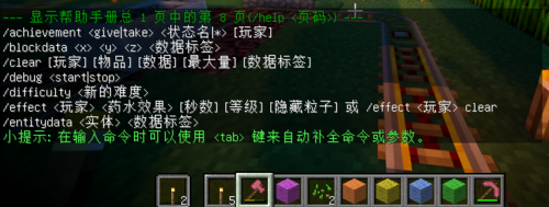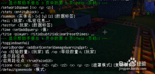 7、此时也可以使用 help 页码 来查看此时支持的指令。开启作弊后该版本支持的命令多出很多。前四页如图。