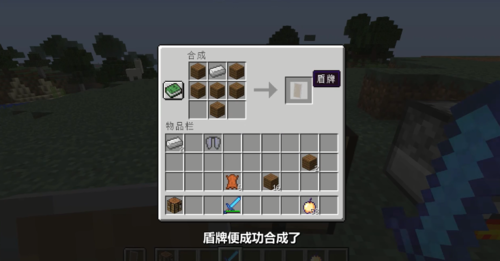3、接着需要6块木板,木板可以由云杉等原木分解获得,当获得这些物品后即可以合成盾牌。
