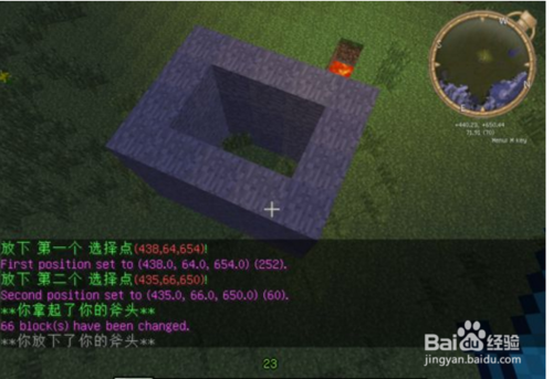2、输出指令以后就会看到一个坐标,这个坐标就是你当前的坐标了。知道坐标以后我们就可以做很多事情,比如记下各个特殊地形例如末地传送门、末地城堡、地狱要塞、自己的家来定位,防止迷路。