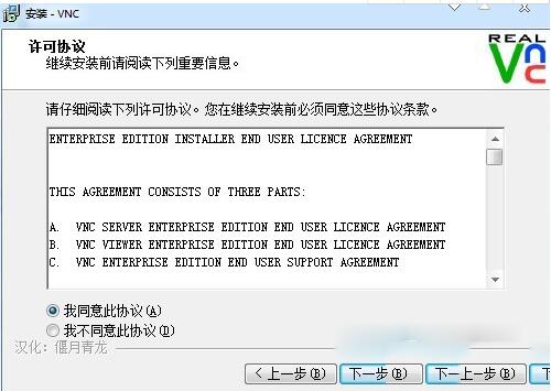 2、开始安装后进入到RealVNC(WinVNC)安装协议界面,请在该页了解协议内容并同意。