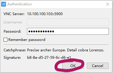 之后,会进行身份验证,输入之前在服务器端设置好的访问密码,然后点击 OK,如果正确的话就可连接到对端计算机。