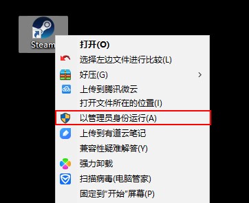 手动以管理员权限启动游戏,右键-Steam-以管理员权限运行