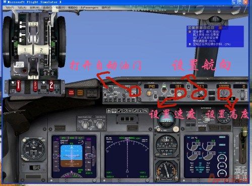 分别打开水平导航、垂直导航、自动驾驶总开关