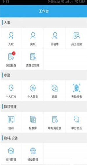 涵盖了项目主管的日常工作事务。一、考勤登记,每日晨会时拍照上传照片,展现项目工作的状态,同时对项目上的保洁员出勤情况进行登记。根据主管每日登记的考勤情况,系统可自动计算出保洁员的工资。二、卫生检查,主管可按时段进行卫生检查,或接收系统每日随机推送的检查点。同时支持扫码二维码进行卫生检查。品质方面,“整改单”是由主管每日巡查,区域经理每月抽查,品管每月督查,三位一体的内部检查发现的问题进行整改处理的通道。“投诉”是对外开放给业主,通过二维码扫码,反馈品质情况的通道。品质的把控形成了企业内部自查和外部投诉的双重保障。三、作业报备,对于项目上的每月例行事项,进行报备登记。此外,还涉及到项目管理的各个方面。人事的快速入离职方面,支持身份证和银行卡的扫描,操作方便,人事信息第一时间同步至公司总部。入职时,无疾病声明杜绝风险隐患,保险购买提醒加强了用工保障。外勤管理方面,个人签到、会议签到、拜访甲方签到、培训签到,全方位还原外勤工作轨迹。物料管控方面,申请轻松快捷,审批流程自行设置。支持物料盘点、调拨、报废等。物料管控与预算相结合,让物料的申请和使用更加合理与规范。设备方面,扫码二维码即可进行设备的维修与保养。智能工资计算方面,无手工零差错。培训方面,为打造可复制的人才提供了丰富的资源。OA等其他功能,将以往纸质化办公方式过渡到信息化办公。