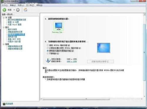 7、T220 自带缩放功能,不带缩放功能的的显示器选择“使用 NVIDIA 的缩放功能”,这样玩游戏就不会拉伸了。