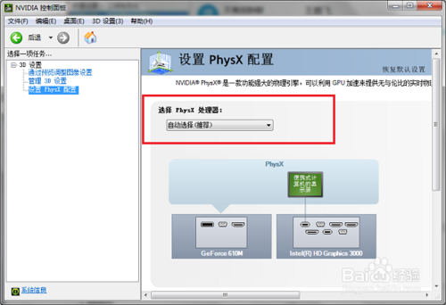 6、进行PhysX设置,PhysX可以直接采取默认设置,点击应用保存之后,就会提升玩游戏的流畅度,如下图所示: