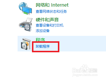 3、在控制面板页面找到程序,下面有个卸载程序的链接。点击进去。