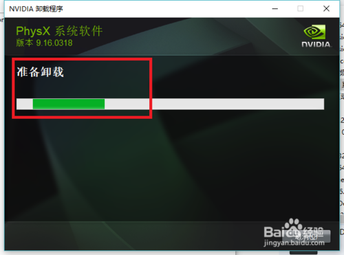 6、点击右下角的卸载按钮,系统就会自动开始卸载nvidia physx软件,如下面图中所示: