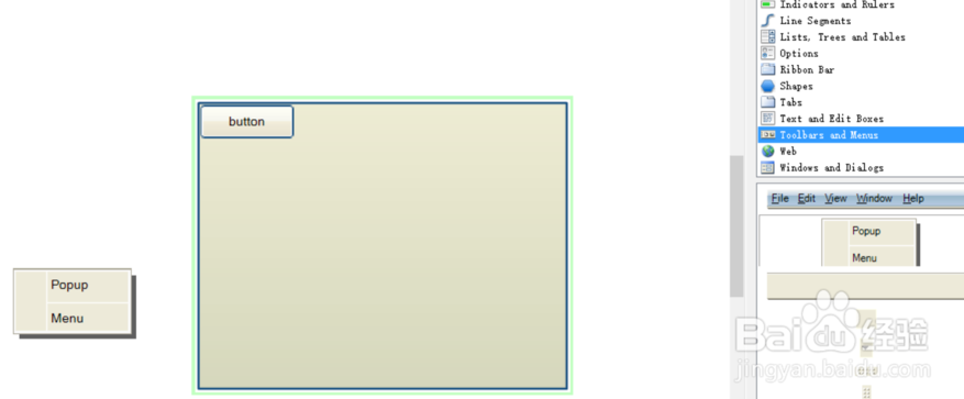 拖出如图所示三个简单的控件,我想要实现点击按钮,蹦出菜单