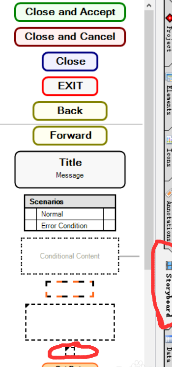 故事板面板提供用于构建设计文档中控制流程的元素来实现一个模拟原型。故事板元素通常显示在其它设计元素的上方。