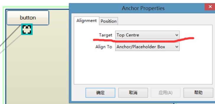 再用连接器连接anchor和菜单(先点anchor控件再连菜单),然后双击anchor控件,Target 为anchor相对菜单的位置而不是菜单相对anchor的位置,要想让菜单随点击位置不同而变化请调整Align To选项