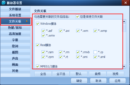 建议可以先关联全部格式文件,被QQ影音关联的文件直接双击播放