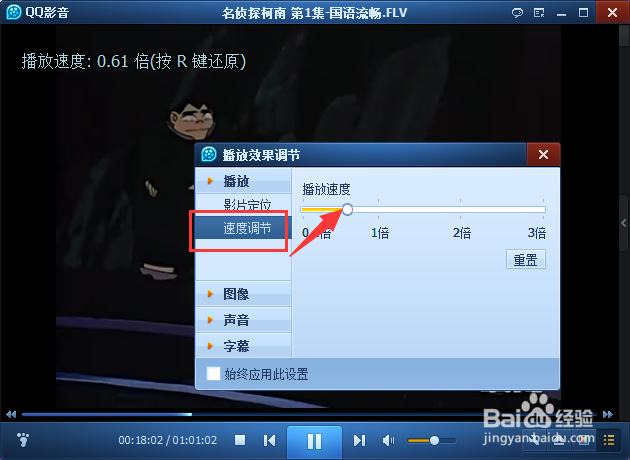 也可以使用快捷键来调整速率,点击打开播放器设置栏