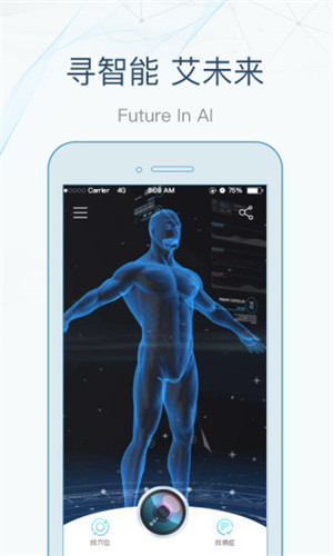 寻艾app是一款检查人体健康状况的医疗软件,寻艾软件采用先进的AR和AI技术为用户寻找穴位查找病状,然后通过大数据分析以及专门的算法让用户直观清晰的了解当前的身体状况,然后对健康进行科学有效的管理。