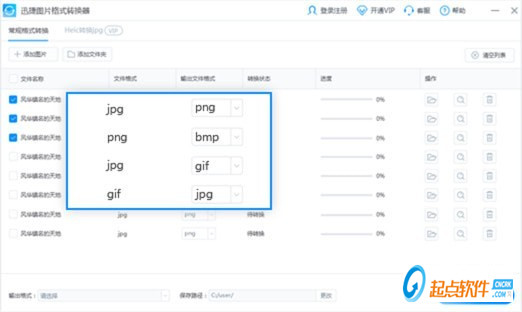 常规格式转换用户可添加单个或批量图片至文件列表,设置好想要转换的格式进行转换;本功能支持转换JPG、PNG、BMP、GIF等多种格式;转换后的图片保持原画高清画质。