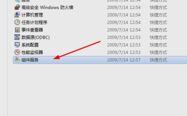 第三步,然后再打开的界面里找到“组件服务”,然后双击点进去