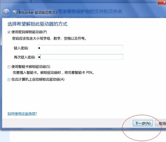 根据提示,一步一步进行加密设置,一般来说选择使用密码加密即可,但是特别需要注重的是需要把恢复密码保存到非加密的分区文件中,而且不能保存在根目录下。而且一定要记住保存位置,劳记密码。