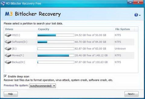 Bitlocker加密分区恢复工具是一款专门恢复误操作、重装系统等原因造成的Bitlocker加密分区丢失、Bitlocker加密分区无法打开的数据恢复软件。软件采用碎片处理技术,可以最大程度确保加密分区数据的恢复。