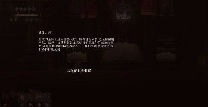 可以看出制作者在故事背景上还是下了一定功夫,甚至还在游戏中加入了一个单独的图书馆用来展示游戏过程中收集到的各种文书。不过碎片化叙事的表现方式有利有弊,神秘和未知虽然能增强游戏阴暗、晦涩的氛围,但也容易让游戏剧情过于支离破碎。