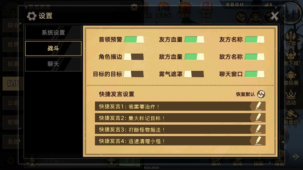 其中快速聊天,允许玩家预设聊天内容,并快捷发布,请在游戏设置-聊天进行预先设置