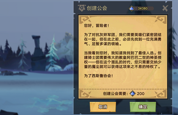 勇者可以加入一个公会或者创建一个公会哦,进入游戏之后,当角色到达20级后,右下角将会显示“公会”按钮。点击“公会”后,主界面上再次点击“创建公会”,并消耗200魔尘,完成公会的创建。