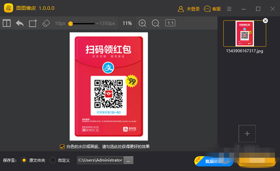 图图橡皮是一款专用于图片去水印的橡皮擦软件。一键去除图片的水印和瑕疵的软件,轻松删除图片中不需要的对象,神经网络算法重构背景图像,让您轻松摆脱图片上的水印、划痕、污渍、标志等瑕疵。